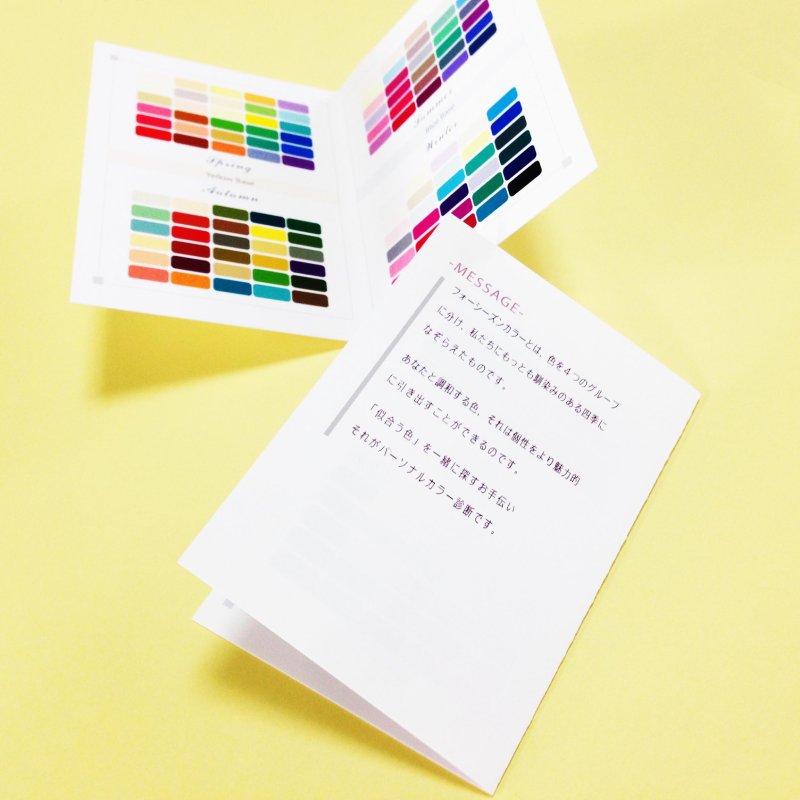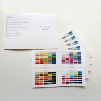 パーソナルカラー簡易診断後のお客様へのサービスお渡し用で購入しました。 サービスで差し上げるものなのでコストパフォーマンス的にも嬉しく、また簡単に2つ折りにできるところが良いですね。