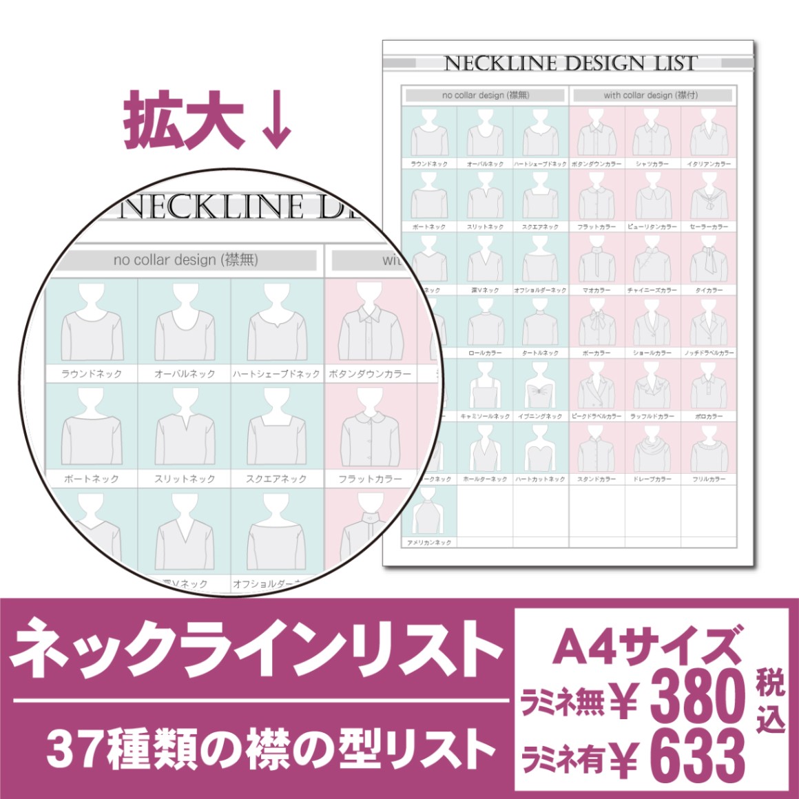 イメージコンサルタントの資料に使っています。 様々な襟タイプを一覧で見られ、好きな襟タイプと似合うタイプの違いやすり合わせを知るのに役立っています。 このシート1枚で、色だけでなく形の提案がしやすくなりました。