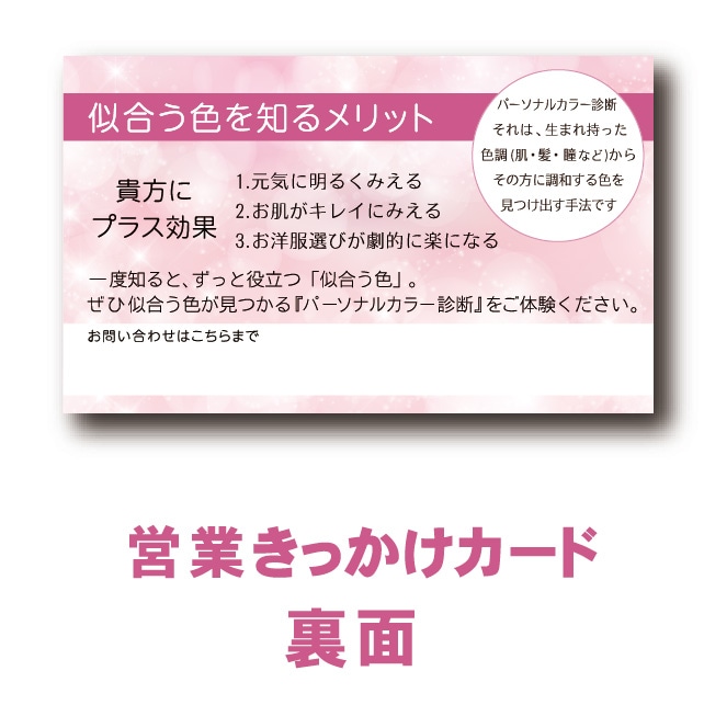 営業ツールとしてとても役立っています。 「パーソナルカラーってどんなメリットがあるの?」といった質問にわかりやすく答える内容がいいですね。 気軽に配れる値段も嬉しいです。